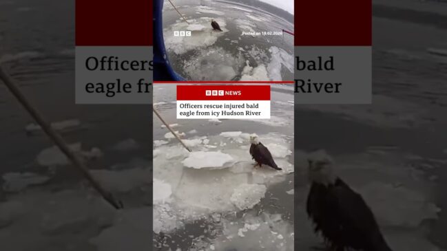 Officers rescue injured bald eagle from icy Hudson River. #NewYork #US #BBCNews